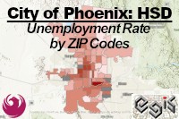 Description: A representation of the ZIP code boundary for any boundaries that intersect the City of Phoenix city limits. This dataset is a copy of the authoritative ZIP Codes feature class, with an additional column indicating the unemployment rate within each ZIP Code. This unemployment rate is carried over from a American Community Survey (ACS) table consisting of the ZIP Code boundaries with the highest unemployment rates within the City of Phoenix limits. Currently this feature class reflects unemployment rates within the City of Phoenix limits as of January 2026 and should be updated as new ACS tables are released by the Census Bureau.