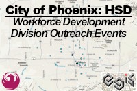 Description: This feature class displays the locations of Workforce Development Division (WDD) Outreach Events. It consists of the geocoded addresses and names of various outreach events across the City of Phoenix, alongside the type of event and organization partnership. This dataset reflects outreach events from 7/10/2025 to 2/27/2026 and should be updated regularly as WDD hosts additional outreach events.